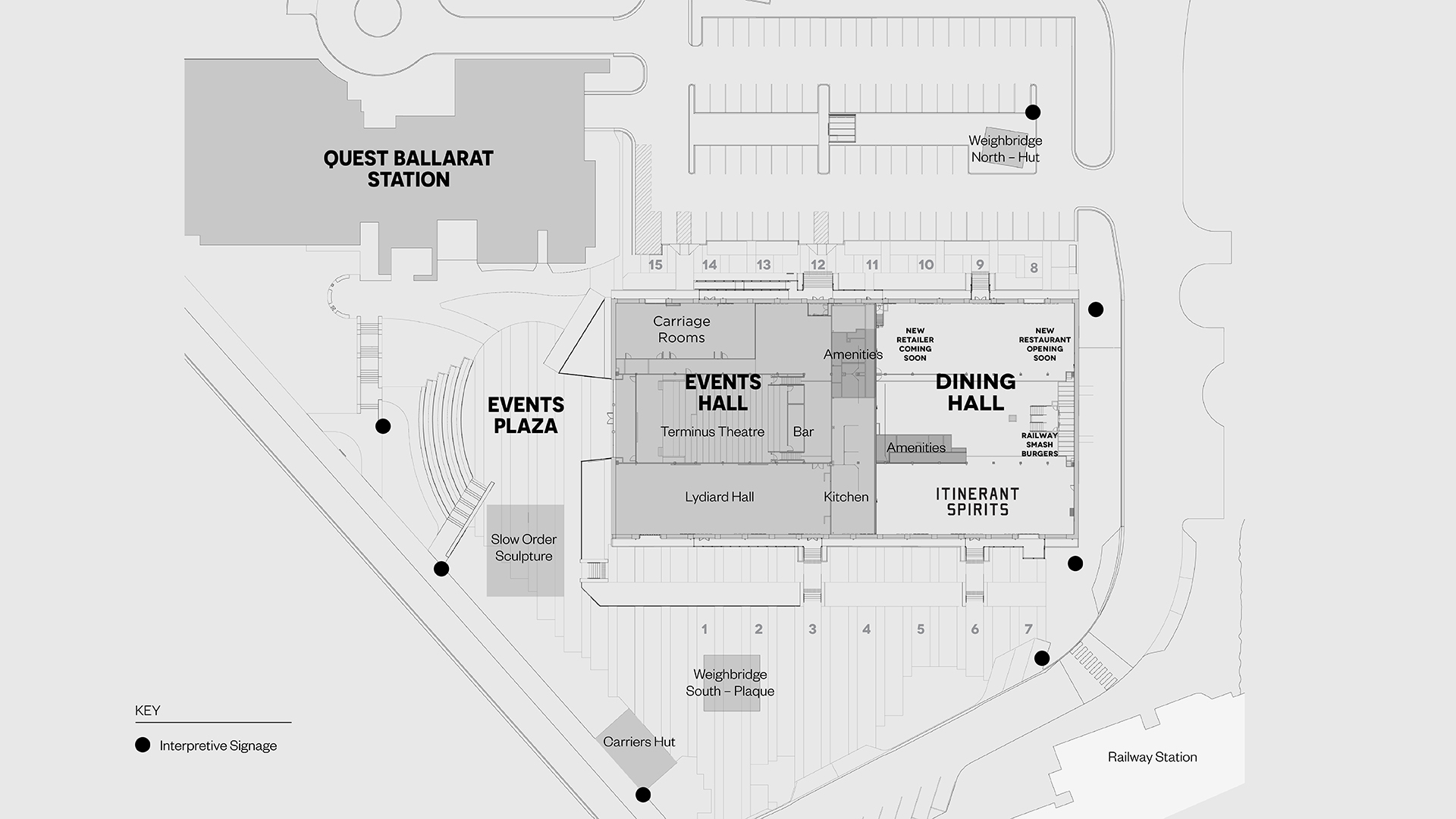 Experience the heritage of The Goods Shed. A curated tale of the site’s history is told on signs throughout the grounds, spanning the 19th and 20th centuries through to present day. The map below provides a guide to the interpretive signage walk – simply follow the dots!